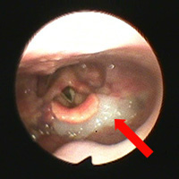 矢印はのどに残ったお粥。